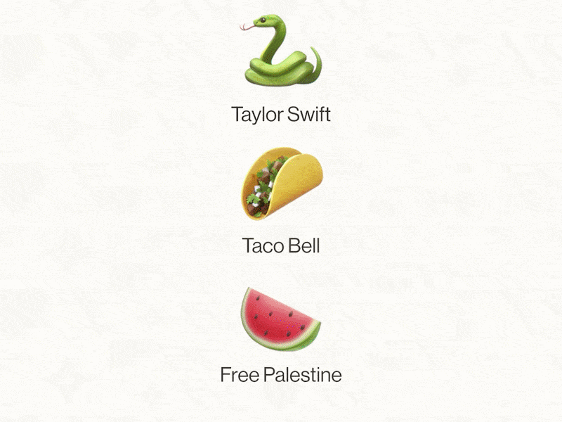 Think ๐ for Taylor Swift, ๐ฎ for Taco Bell, or ๐ for the Free Palestine movement.